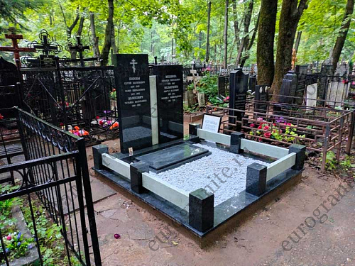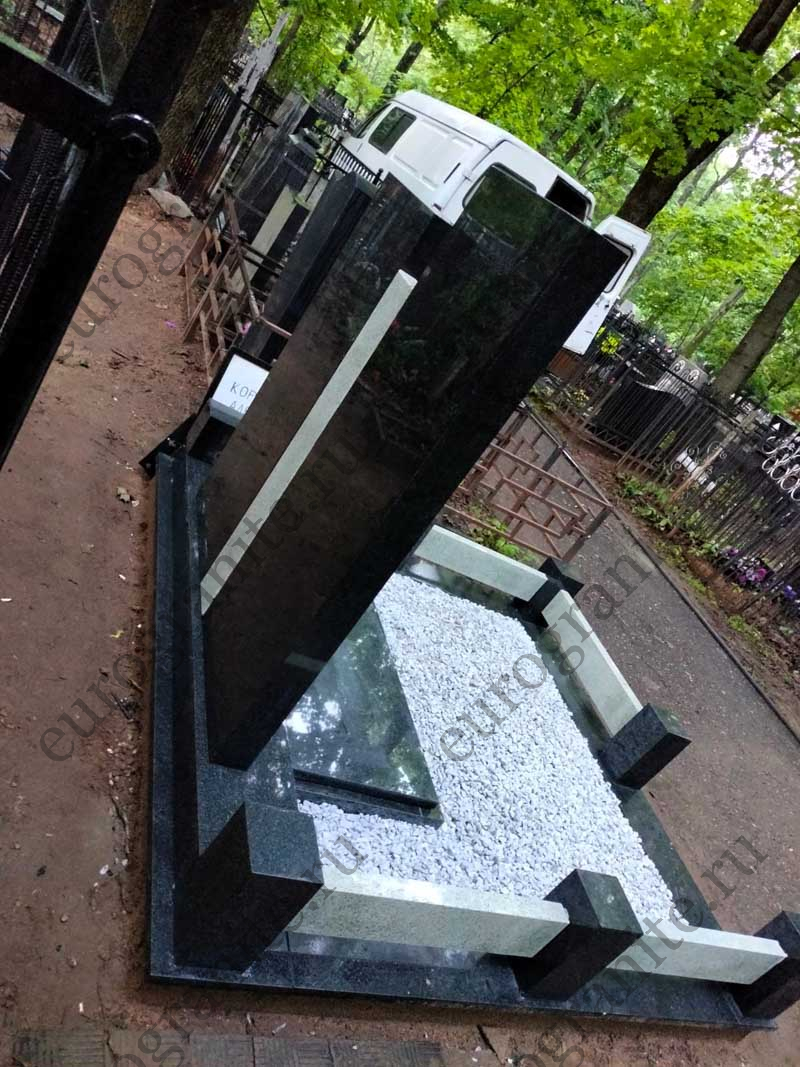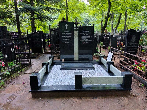 Мемориальный комплекс под артикулом МК-20 - это монументальное семейное захоронение, выполненное в благородном сочетании двух видов натурального камня: черного габбро-диабаза и светлого мансуровского гранита .