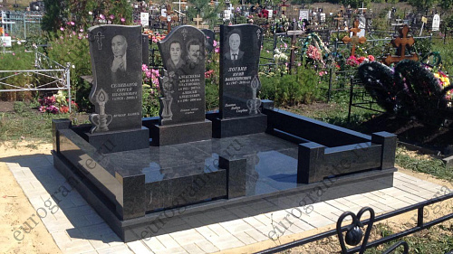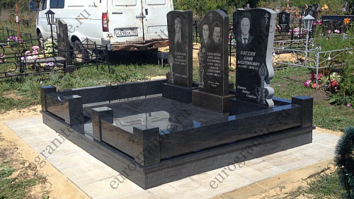 Этот мемориальный комплекс (артикул МК-34) устанавливается на семейных участках захоронений, позволяет объединить в единые целые могилы нескольких близких родственников. Кроме надгробий фигурных форм в композицию входит монолитный железобетонный фундамент с полной облицовкой, сверху которого установлен невысокий гранитный цоколь, выступающий как ограда с семью столбами. Кроме фотографий и данных об усопших на стелах из гранита выгравированы цветы и горящие свечи. Такие мемориальные комплексы требуют минимума ухода. Возможна доставка и установка мемориала на кладбищах Москвы и области.