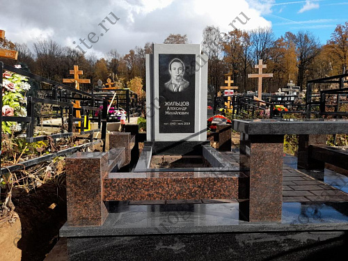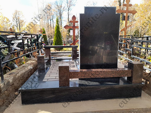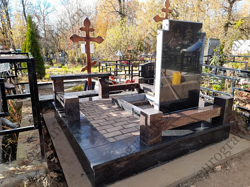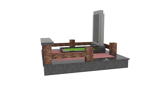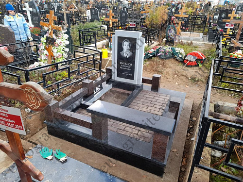Для создания мемориального комплекса под артикулом МК-52 специалисты гранитной мастерской «Еврогранит» использовали гармоничное сочетание дымовского гранита и габбро-диабаза. В комплекс входят памятник – вертикально стоящий монумент, выполненный в виде двойной стелы для эффекта объёмности, с художественной гравировкой портрета и надписей, железобетонный цоколь с полной облицовкой, сверху которого установлен цоколь с лавкой из дымовского гранита, а внутри участка уложена тротуарная плитка.