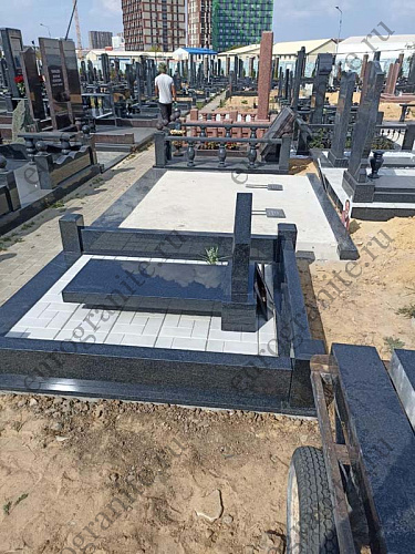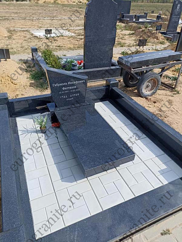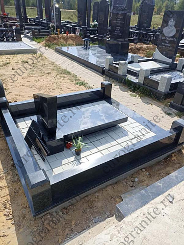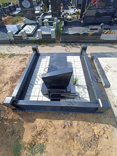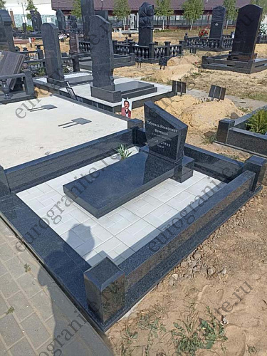 Мемориальный комплекс МК-70 (МК-70) изготовлен из прочного гранита Габбро-Диабаз, он включает в себя прямоугольный железобетонный цоколь, облицованный сверху гранитной плиткой, над которым установлен низкий гранитный цоколь, состоящий из 3 балок и 4 столбиков, выступающий в качестве ограждения. Внутри цоколя уложена тротуарная плитка. Центральным элементом является невысокая стела, у подножия которой расположена надгробная плита из чёрного полированного гранита. Оформлена стела аккуратной памятной гравировкой, высеченной на памятнике. Стоимость решения зависит от размеров участка захоронения, и по запросу клиента может быть рассчитана индивидуальная смета, учитывающая все пожелания и требования.