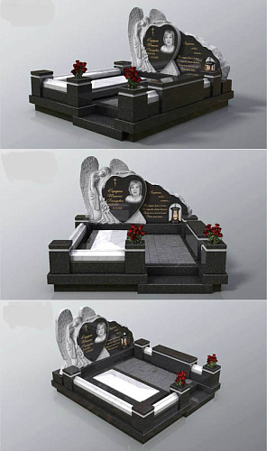 Премиальности этому комплексу придаёт конечно же величественная стела, состоящая аж из 3 очень сложных элементов, которые в свою очередь расположены на 2 стелах. Центральное место отведено для основного элемента – памятника в виде сердца с художественной гравировкой портрета, при этом надписи выполнены методом глубокой гравировки с покрытием бронзовой краской. С левой стороны расположен высеченный скорбящий ангел - символ вечной жизни и небесного покровительства, который является одним целым с центральным элементом - сердцем. С правой стороны расположена дополнительная плита, на которой выгравирована длинная эпитафия, а внизу плиты – специальный вырез, куда установлена гранитная лампадка.