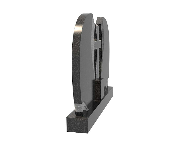 Форма округлая, с рельефами и плавными линиями. Центральную часть занимает крест из гранита, на который опираются две симметрично отображенные стелы. Памятник имеет двухцветное решение. Предназначен для установки на участках с двумя захоронениями родственников.