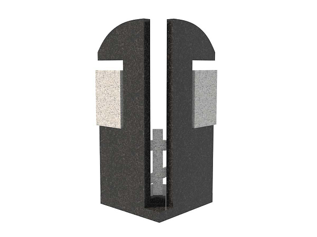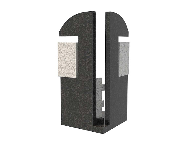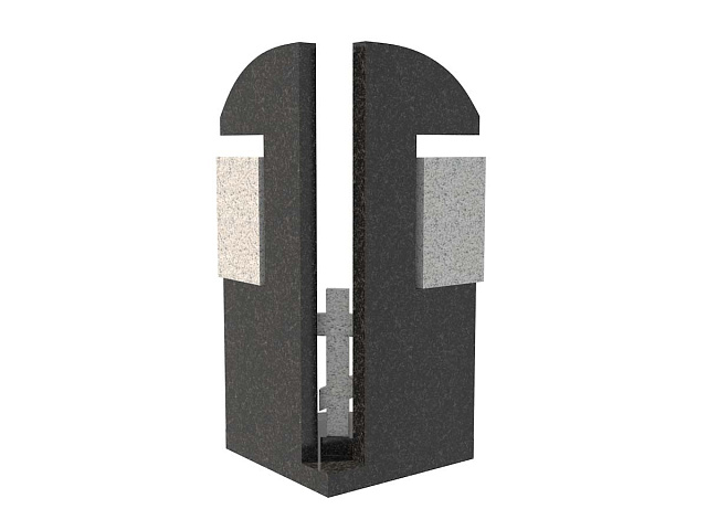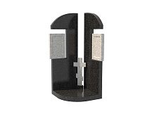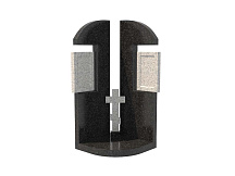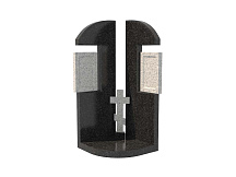 Семейный памятник из гранита, обозначенный в каталоге артикулом sp-18, состоит из двух стел, расположенных под углом относительно друг друга. Между ними – традиционный православный крест из натурального камня.