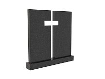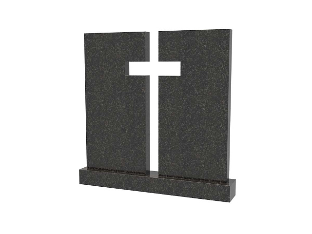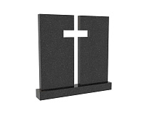 Семейная стела из гранита под артикулом sp-21 представлена в виде двух монументов, визуально связанных между собой православным крестом, образованным пространством между ними и очертаниями соседних граней.