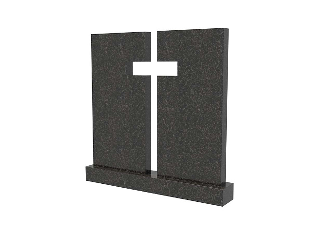Семейная стела из гранита под артикулом sp-21 представлена в виде двух монументов, визуально связанных между собой православным крестом, образованным пространством между ними и очертаниями соседних граней.