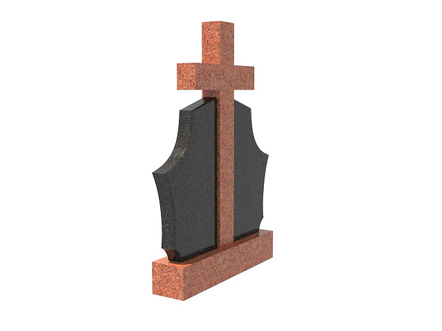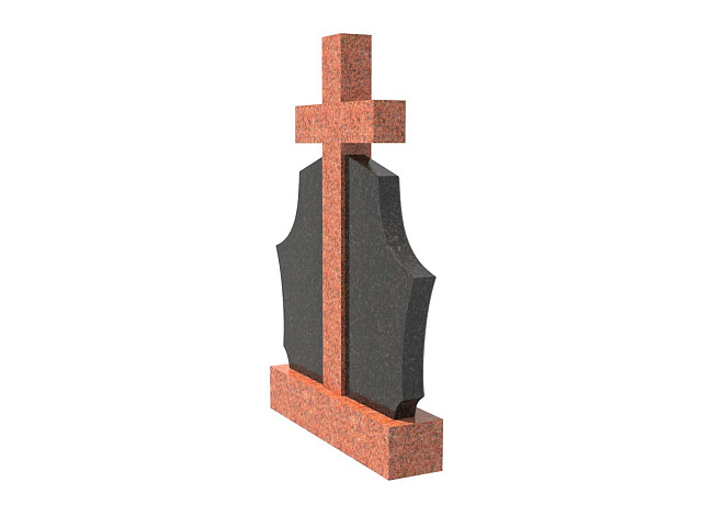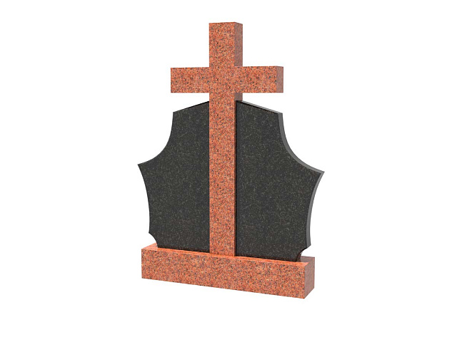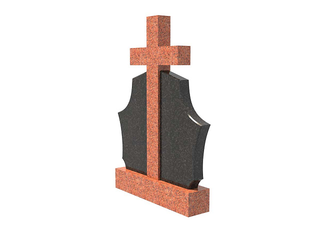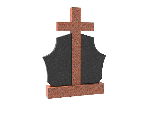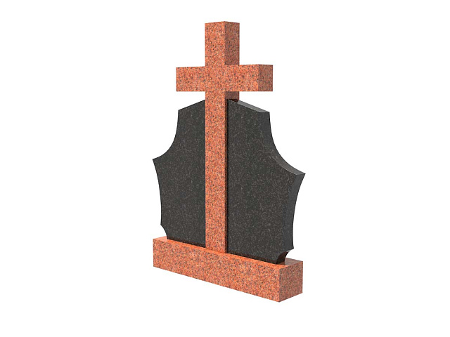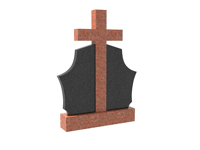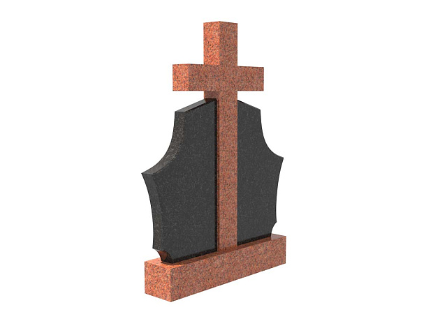 Двойной комбинированный семейный памятник в форме щита с крестом SP-28