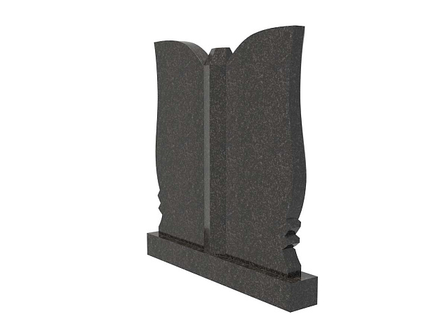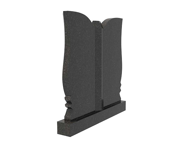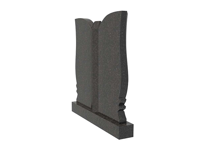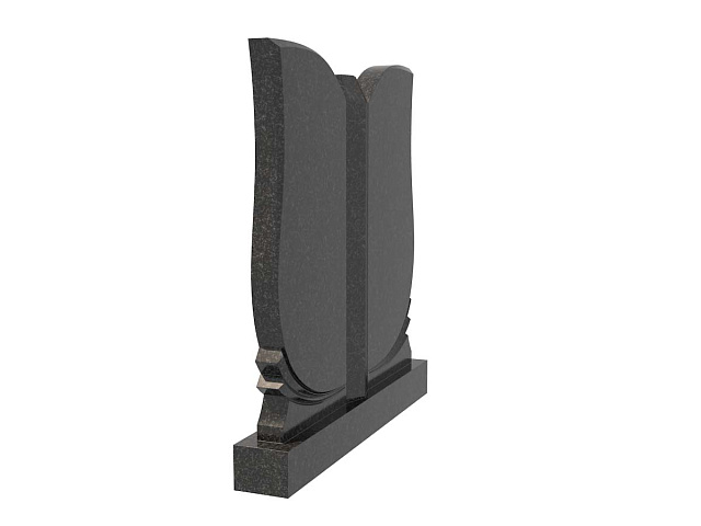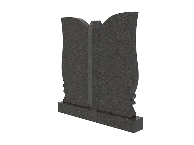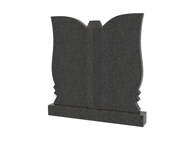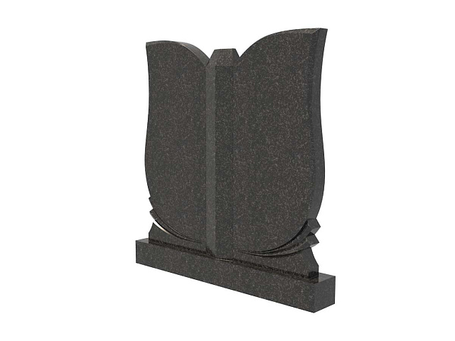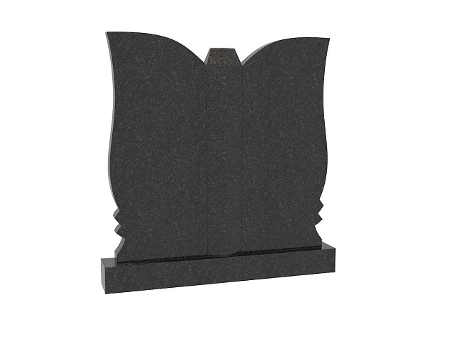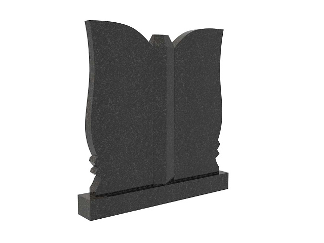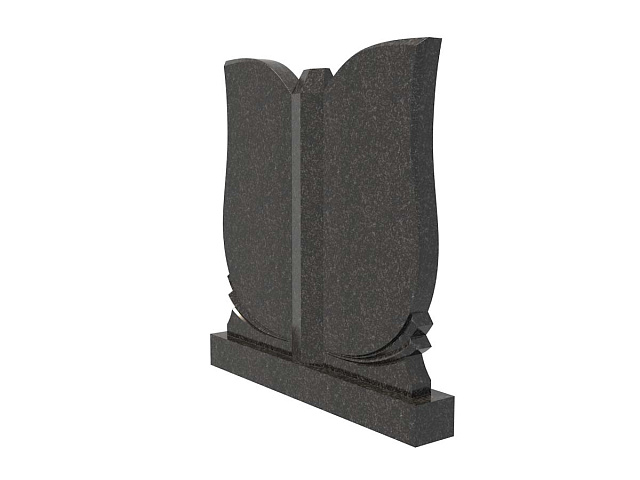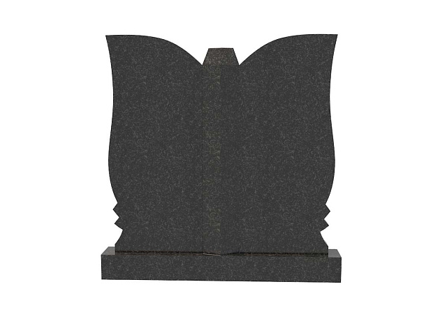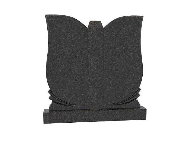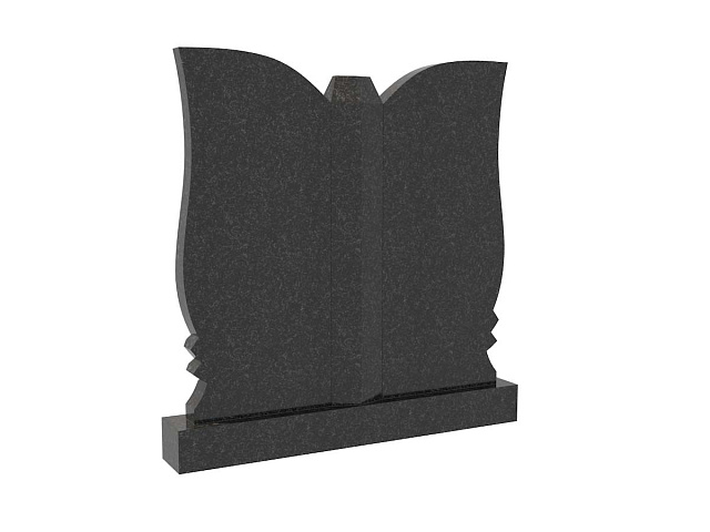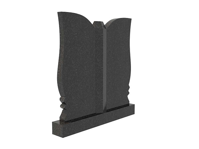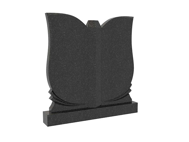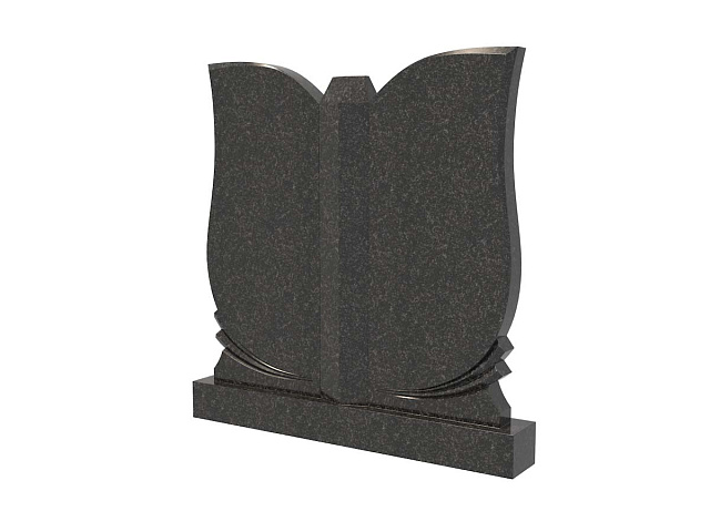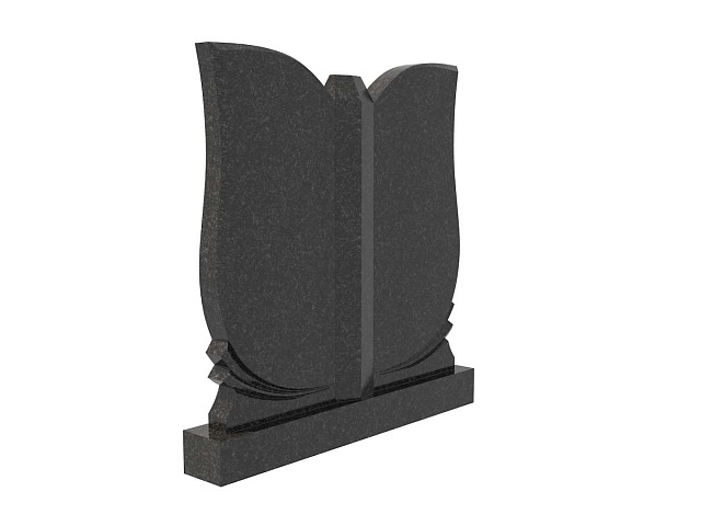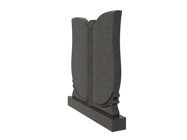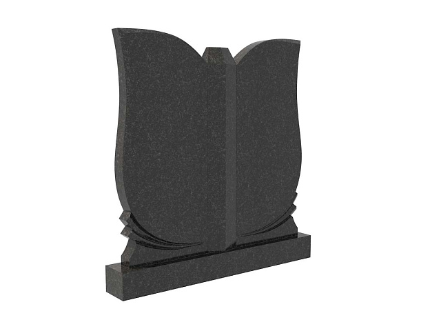 Гранитный памятник для семейных могил с артикулом sp-29 выполнен в форме бутона цветка. На двух его симметрично расположенных лепестках наносят данные о захороненных близких и родственниках – фамилию, имя, отчество, даты рождения и смерти, а также фотографии.