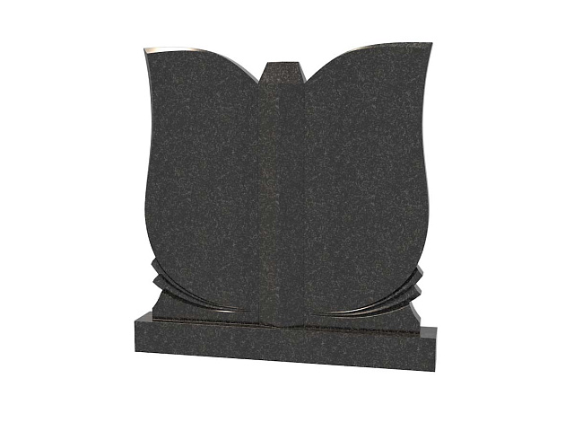 Гранитный памятник для семейных могил с артикулом sp-29 выполнен в форме бутона цветка. На двух его симметрично расположенных лепестках наносят данные о захороненных близких и родственниках – фамилию, имя, отчество, даты рождения и смерти, а также фотографии.