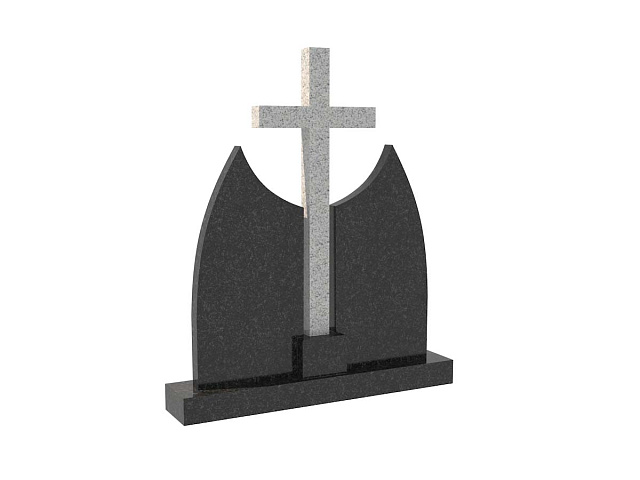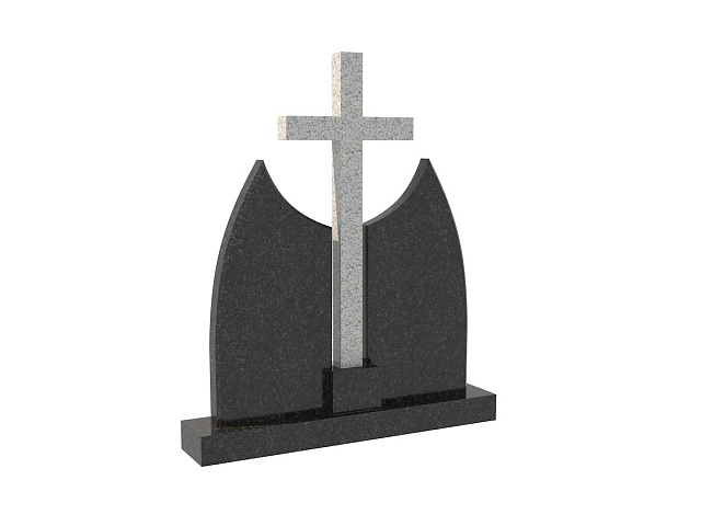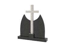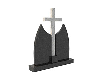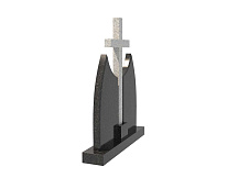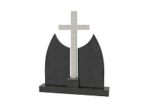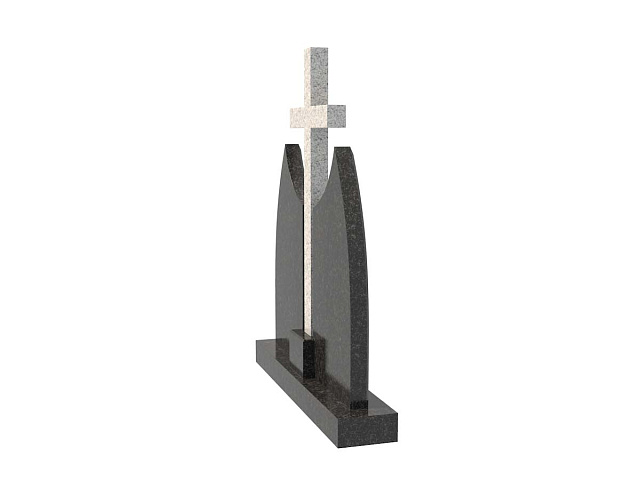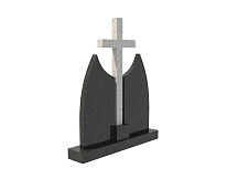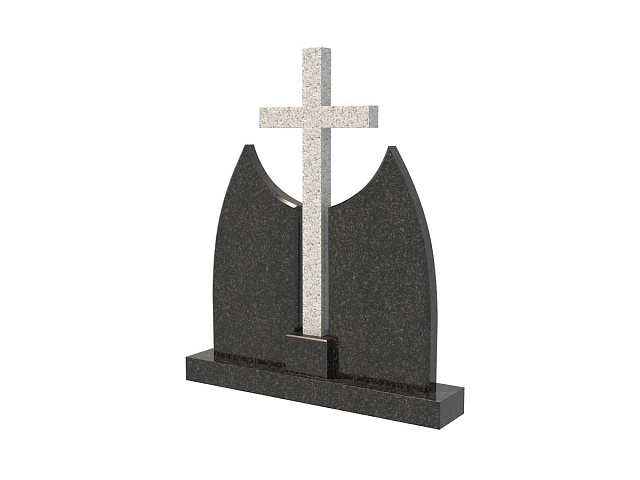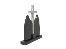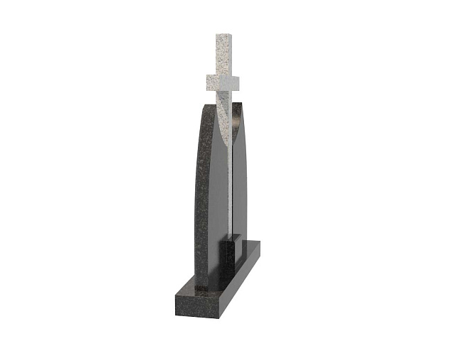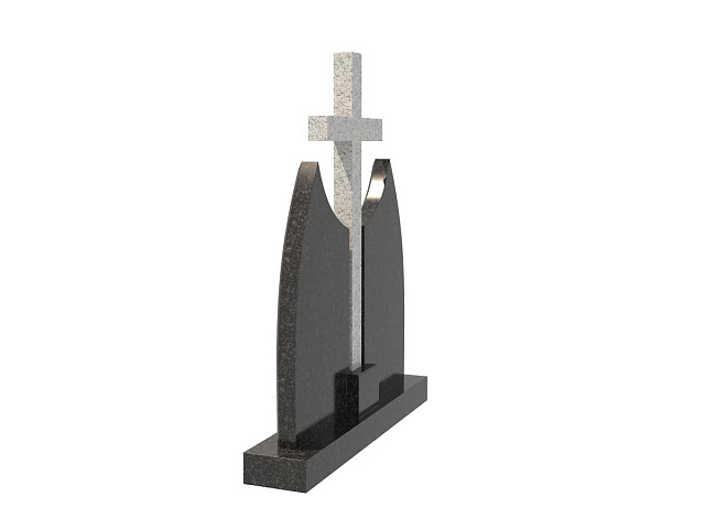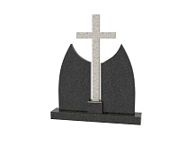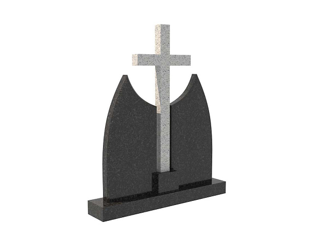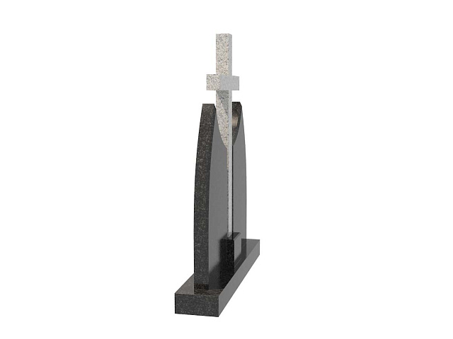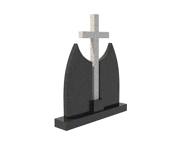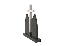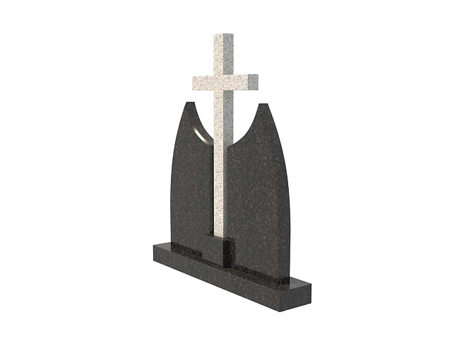 В центре семейного памятника sp-33 – белый крест на фоне черного гранитного камня, форма которого повторяет контур солнца. Крест визуально разделяет монумент на две равные части для нанесения на них информации об усопших и захороненных на одном участке родственниках.