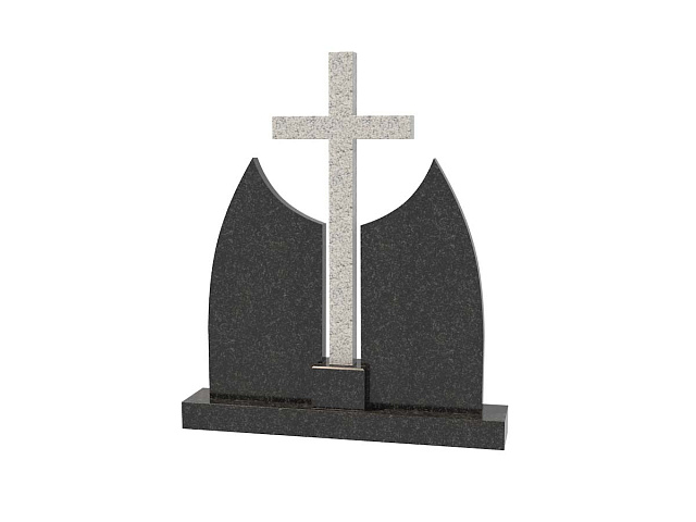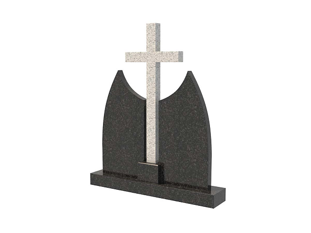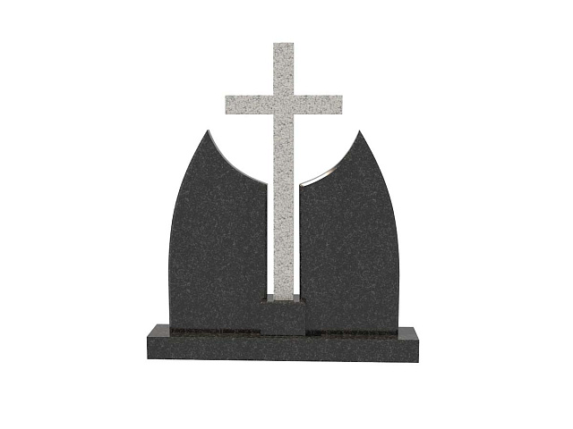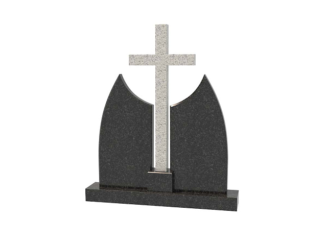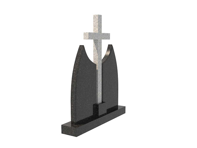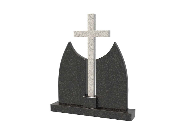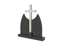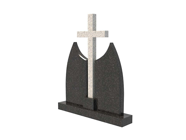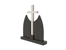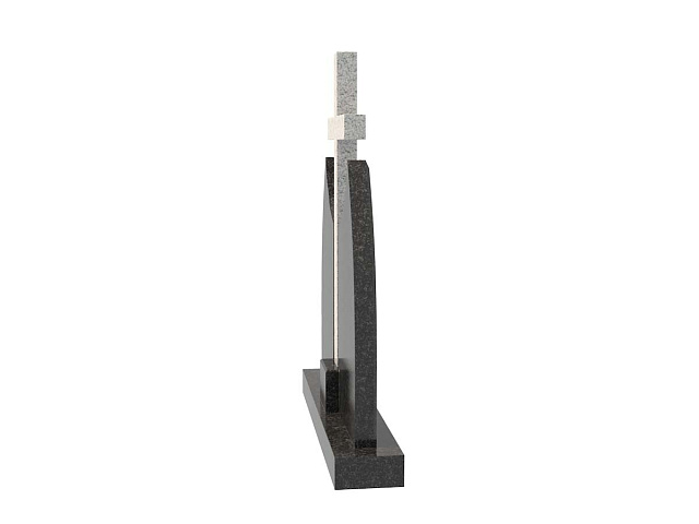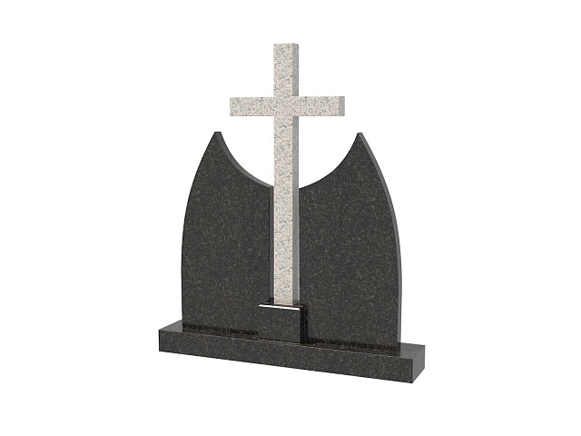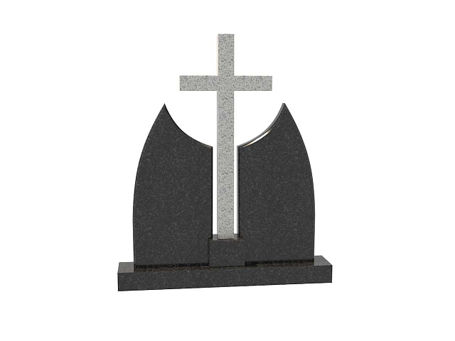 В центре семейного памятника sp-33 – белый крест на фоне черного гранитного камня, форма которого повторяет контур солнца. Крест визуально разделяет монумент на две равные части для нанесения на них информации об усопших и захороненных на одном участке родственниках.