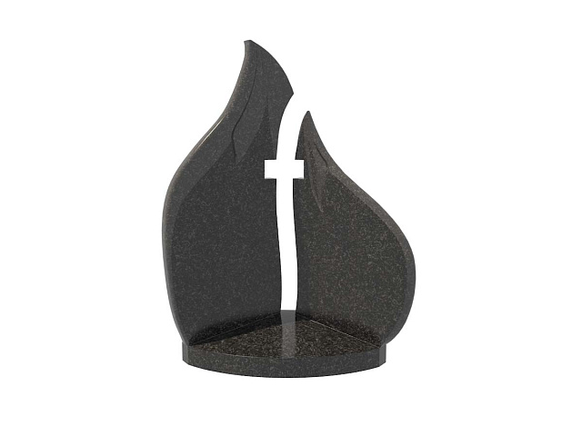 Гранитный монумент для семейных захоронений с артикулом sp-4 изготовлен в форме пламени горящей свечи, контур которой образован двумя плитами.