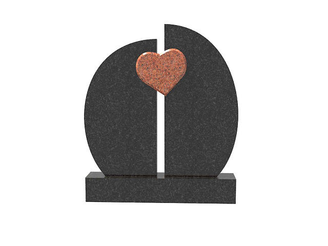 Его отличительная особенность в плавных округлых формах. Монумент состоит из двух полукругов, которые объединены по центру сердцем контрастного цвета из гранитного камня. Такой стелой можно заменить старее памятники на месте захоронения или установить на могиле, где похоронено двое родственников (родители, бабушки и дедушки, сестры и братья, дети, внуки).