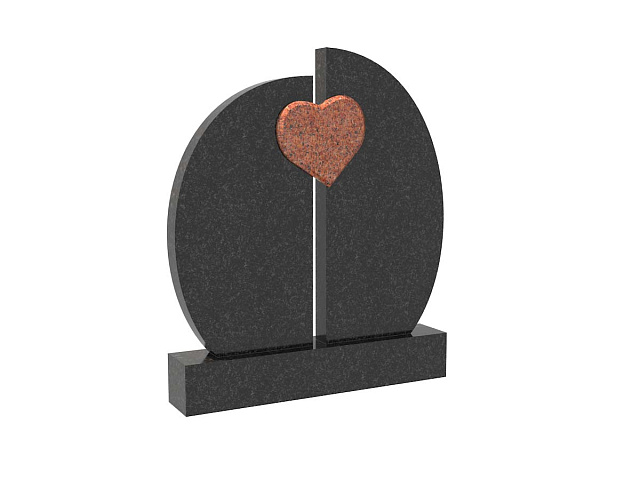 Его отличительная особенность в плавных округлых формах. Монумент состоит из двух полукругов, которые объединены по центру сердцем контрастного цвета из гранитного камня. Такой стелой можно заменить старее памятники на месте захоронения или установить на могиле, где похоронено двое родственников (родители, бабушки и дедушки, сестры и братья, дети, внуки).