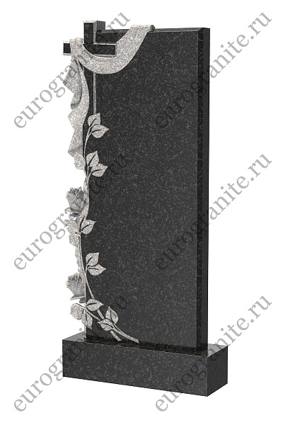 Памятник st-122 выполнен вертикально. Боковая часть украшена розами, восходящими к кресту. Он частично вынесен за пределы гранитного среза, декорирован тканью. Можно заказать монумент в размере, отличном от стандартного.