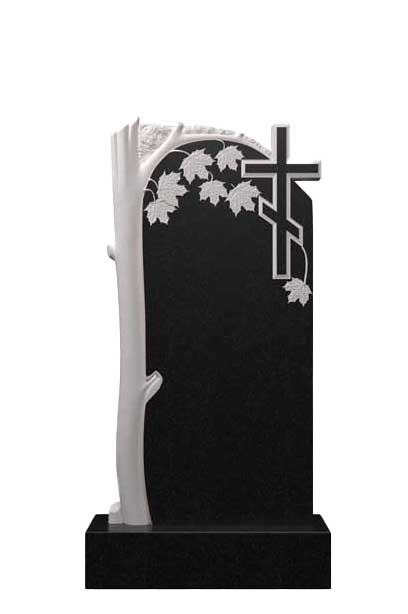 Эта модель отличается асимметричной композицией и глубоким символизмом. Слева вверх тянется стилизованный ствол дерева, который в верхней части разветвляется, образуя крону из резных листьев. Справа в навершии расположен православный крест. Сочетание природной тематики и религиозного символа олицетворяет вечную жизнь души и неразрывную связь поколений. Уточнение - все резные элементы этого и следующих памятников сделаны на общей плите одной породы методом высечения.