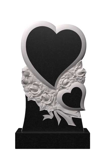 Вертикальный памятник из гранита два сердца в розах Ц-53
