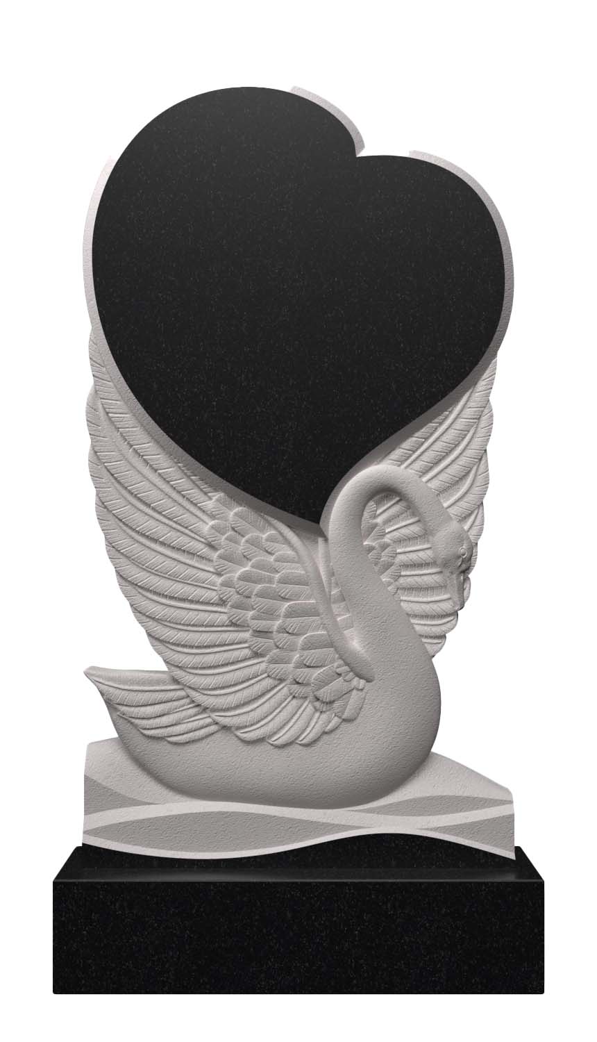 Вертикальный памятник из гранита лебедь с сердцем АВ-61