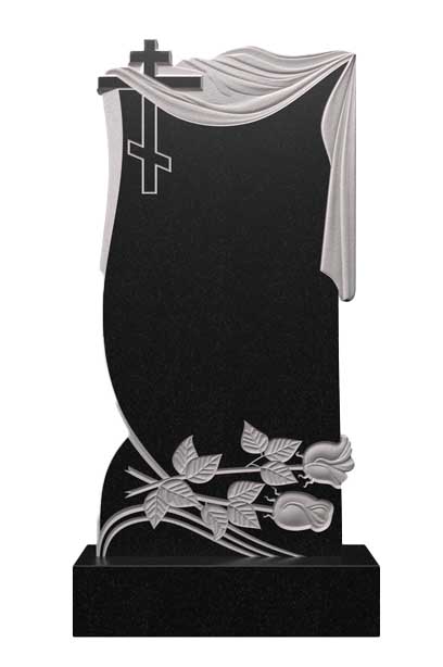 Вертикальный памятник из гранита с крестом, плащаницей и розами Ц-104