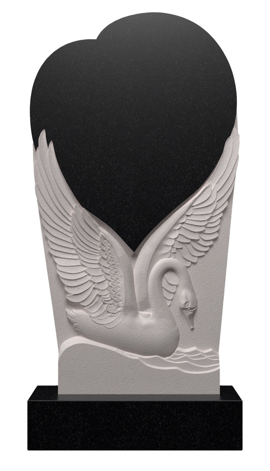 Вертикальный памятник из гранита в форме сердца с лебедем АВ-36