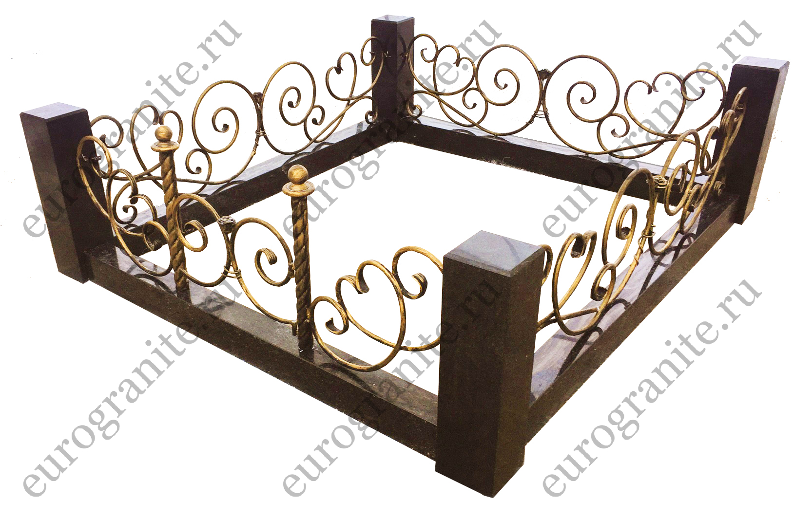 Узор по периметру ограждения представлен в виде цветов и классических округлых линий. Ограждение устанавливается на новых или старых местах захоронения для придания могиле ухоженного вида, обозначения границ, оформления клумб, высаженных на месте захоронения.
