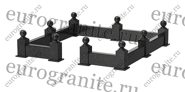Гранитный цоколь С-9 прямоугольной формы с входом по центру для обозначения и ограждения участков на кладбище может быть выполнен из диабаза или Дымовского камня.